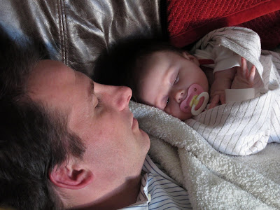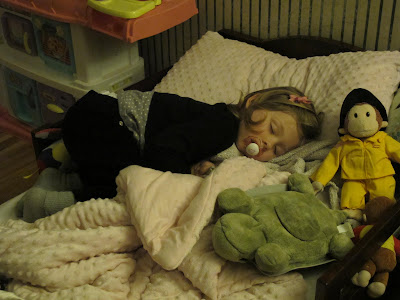 Mads sound asleep in the midst of 3 people talking and taking pictures in her room! I think she's tired :)